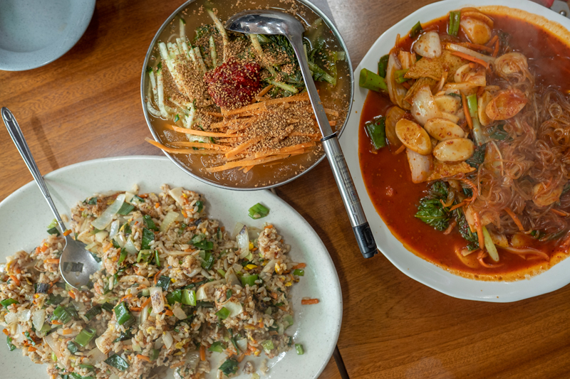 맛스넥 하우스의 잡채와 열무국수와 볶음밥. 양이 어마어마하다 |