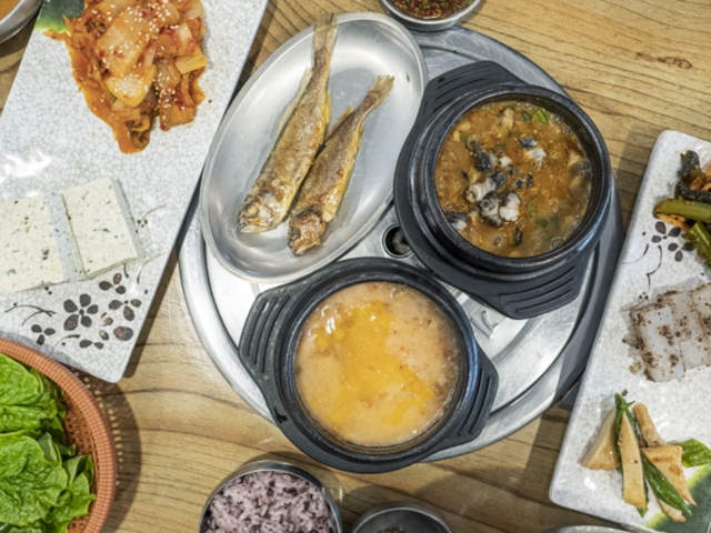 주문하니 밑반찬들이 먼저 깔린다. 콩나물무침, 꽈리고추 멸치볶음, 느타리버섯볶음, 취나물무침, 올방개묵무침, 가지볶음 등등. 나이가 들수록 맛있어지는 것들이다. 두부가 나왔는데 해초 같은 것이 섞여 있다. 먹어 보니 매생이다. 두부에 매생이를 넣은 매생이 모두부는 처음이다. 메인은 퉁퉁장과 콩비지. “강된장은 되직하게 끓였구나. 아, 이렇게 말해 놓고 보니 뭔가 상당히 아저씨 같다.” 아내가 답했다. “아저씨잖아.”