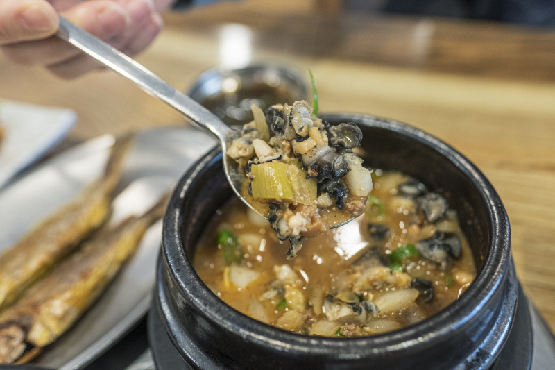 우렁이 푸짐하게 들어간 퉁퉁장. 구수한 찌개 내음에 겨우내 달아났던 입맛이 돌아온다 |