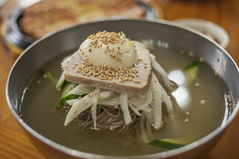 오두산막국수의 물막국수. 막국수에서는 그윽한 메밀향이 난다. |