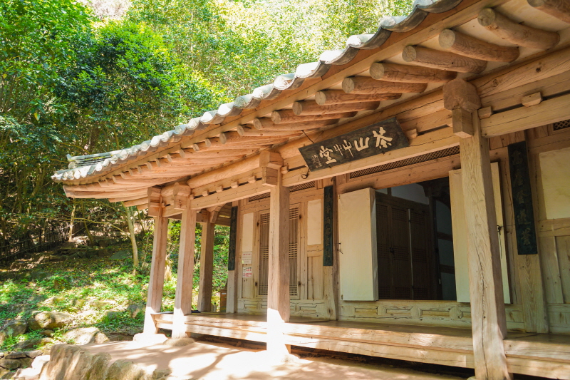 다산 정약용 선생을 만나러 가는 길은 호젓하다. 서너 조각의 빛이 겨우 들만큼 무성한 숲길을 지나다가도 강진만이 발아래 펼쳐진다. 한량처럼 여유롭게 걷다가도 허리에 손을 얹고 오르막길을 오르게 된다. 30분의 산행 끝에 다산초당에 도착했다. 만덕산 기슭에 소박하니 자리한 집에는 다산 정약용 선생의 초상화가 걸려 있었다. 10여 년간 이곳에 머무르며 목민심서를 저술하고, 실학을 연구했다고. 마루에 걸터앉아 새소리를 들으며 절친한 벗인 혜장선사와 다산의 대화를 그려보았다.