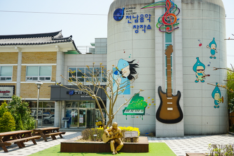본디 흥과 멋과 맛은 하나라. 먹거리장터, 한정식체험관, 음악창작소가 한자리에 모였다. 강진 오감통은 음악과 음식을 모두 즐길 수 있는 복합문화공간이다. 음악창작소는 지역 뮤지션의 창작활동을 적극적으로 지원하고, 지역민의 여가생활에 이바지하기 위해 세워졌다고. 코로나19만 아니었더라도 활기를 띠었을 넓은 야외무대가 적적하게 느껴졌다.