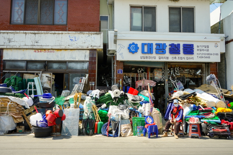 조선시대 제주마들이 육지에 내려 처음으로 먹이를 먹었던 곳이라 하여 그 이름이 붙여졌다고. 좀 더 거슬러 고려시대에는 강진만에서 만든 고려청자를 개성까지 나르는 시작점이었다고 한다. 지금은 서남부 최남단에서 육로로 바다를 잇는 곳. 시대를 거듭하며 이야기를 품고 있는 곳. 배가 고프다. 일단은 내려야겠다. 해물칼국수를 비롯해 각종 신선한 재료로 만든 맛집이 바다를 마주하고 있다. 배를 든든히 채우고 전망대로 향했다. 가는 길에는 좌우로 수산시장이 들어섰다. 토요일마다 열리는 마량놀토수산시장은 수입산, 바가지, 비브리오(세균의 한 종류)가 없는 3무 시장이라고. 갓 잡아올린 싱싱한 해산물이 손님들을 기다린다.
