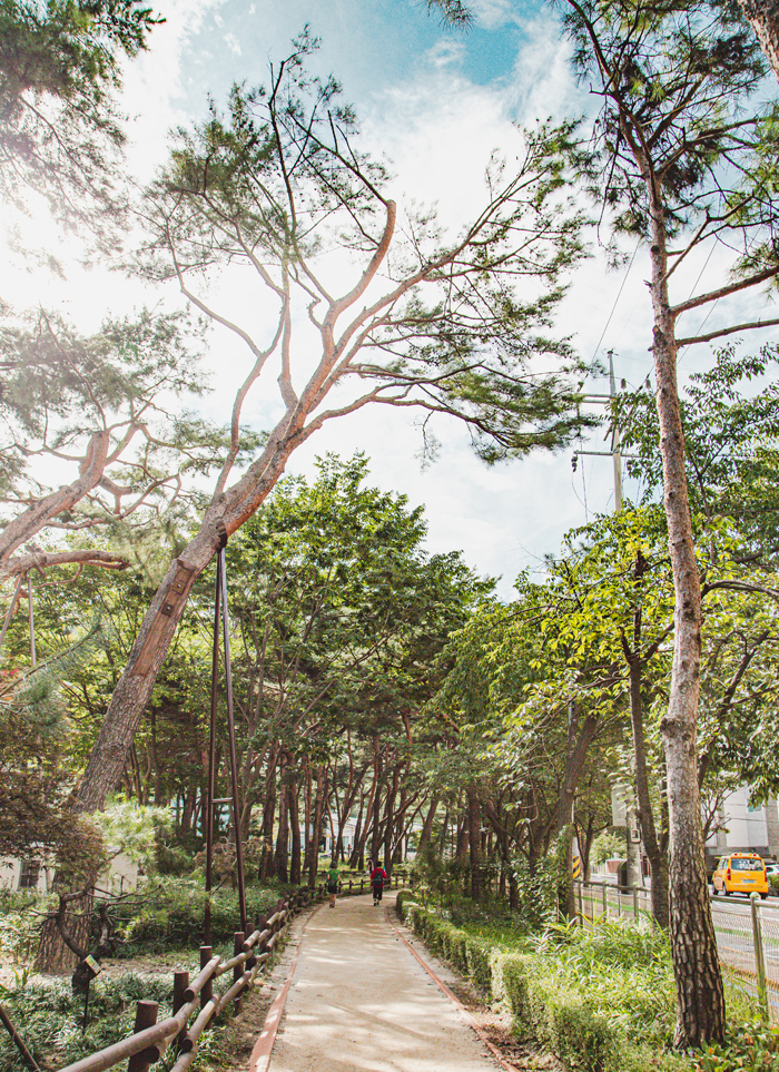 계절에 상관없이 늘 푸른 녹음을 선사해 주변 아파트단지 주민들의 산책 코스로 사랑받고 있다. 잘 알려져 있지 않지만, 대나무에서 나오는 피톤치드의 농도는 편백나무 못지않아 산림치유 효과가 있다고. 빽빽한 대나무숲 사이를 헤치며 걷다 보면 온몸에 상쾌한 느낌이 전해져 온다.