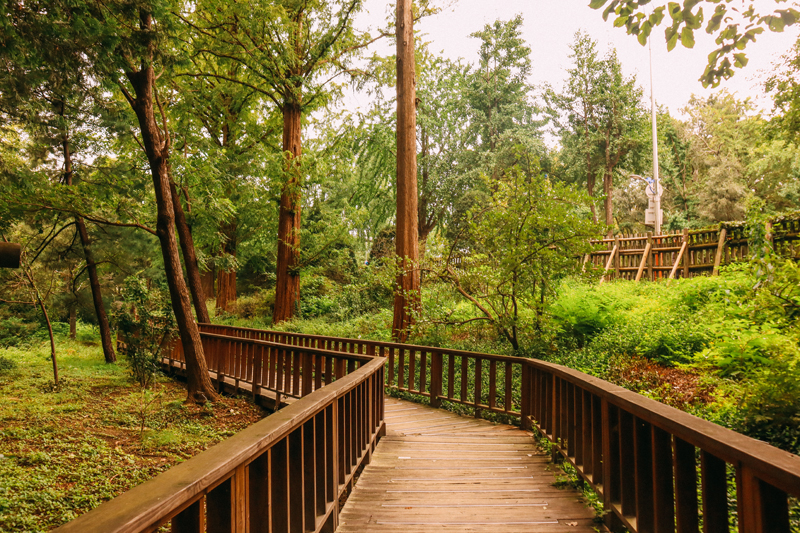 1998년에 준공되었으니 더욱 무성할 따름이다. 자연은 시간이 지나도 낡지 않는다. 면적은 무려 8만여 평방미터 규모. 광장지구, 저수지지구, 초지지구, 습지지구, 산림지구, 농천지구 등 다양한 테마로 조성되어 있다.