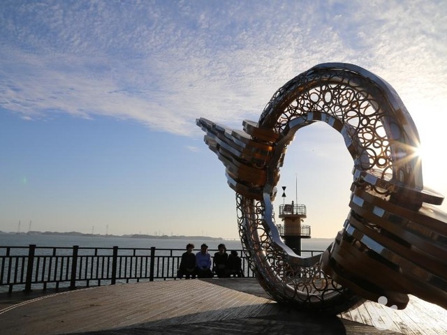 파도 위에 아름다운 노을빛을 형상화한 구봉도 낙조전망대의 조형물 |