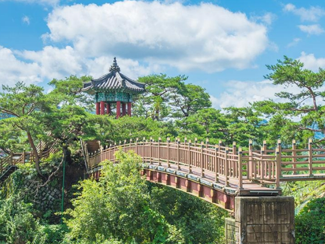 옥계폭포는 가파른 절벽에서 쏟아져 내리는 물줄기가 약 20m에 이르며 수려한 주변 경관과 어우러져 일대 장관을 이룹니다. 또한, 예부터 수많은 시인들이 모여 아름다움을 찬탄하는 글을 많이 남긴 곳으로 알려져 있는데요. 그중 조선시대의 뛰어난 음악가 난계 박연 선생이 즐겨 찾아 박연폭포라고 불리기도 하며 입구에는 박연 선생의 조형물도 있습니다. 이곳에서는 옥계폭포뿐만 아니라 매표소부터 옥계폭포까지 가는 길의 풍치도 감상하면서 오솔길을 걸으면 더욱 기억에 남는 여행을 할 수 있습니다.