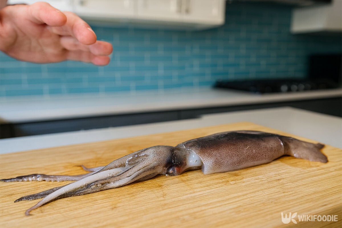 도마 위에 오징어 한 마리를 올려놓고 있다. / 위키푸디 |