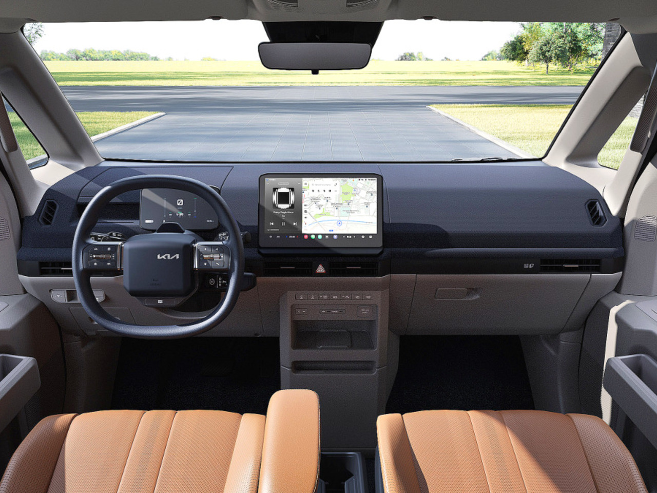 내비와 앱을 동시에 쓸 수 있고, 차량 상태를 실시간으로 확인하거나 원격으로 조작할 수도 있으며, 운전자 맞춤 액세서리 장착을 위한 ‘기아 애드기어’도 지원된다