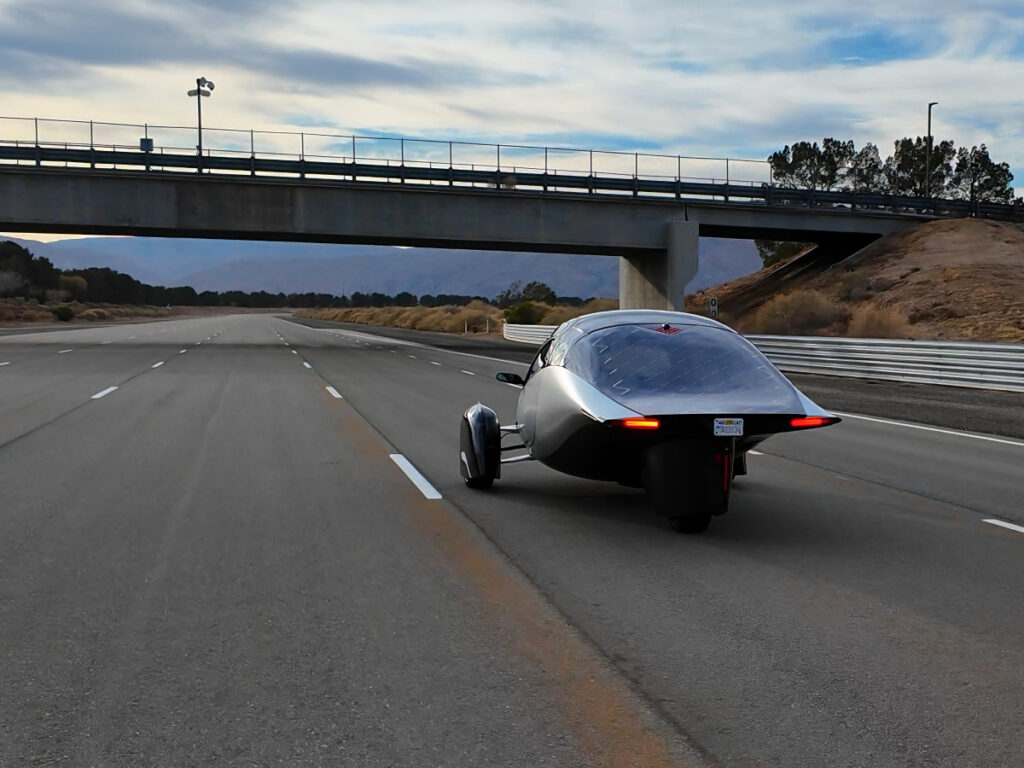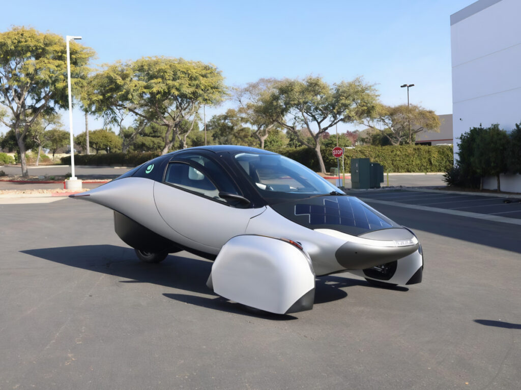 앱테라는 일반적인 전기차와는 확연히 다른 3륜 구조와 공기역학적 디자인이 특징이다.