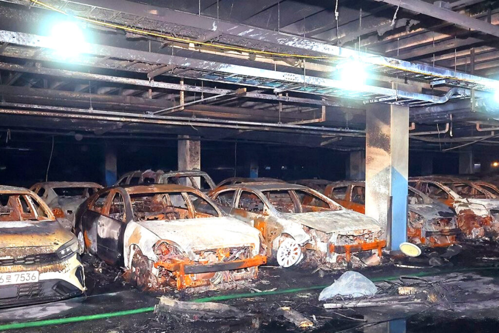 지난달 1일 오전 인천시 서구 청라국제도시 아파트 지하 1층에 벤츠 EQE에서 발생한 화재는 검은 연기로 가득 차 아파트 단지까지 뒤덮였고, 주민 103명이 대피했으며, 105명은 계단과 베란다를 통해 구조되었다.