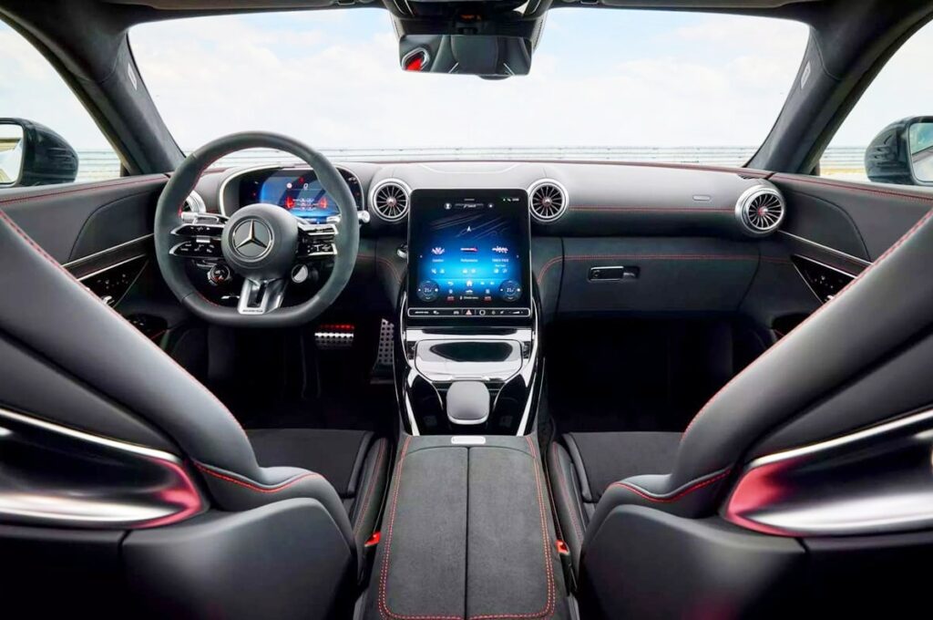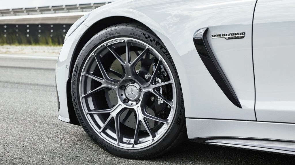 전면부 범퍼에는 큰 공기 흡입구와 카본 디플렉터가 장착된다. 능동형 에어패널(AirPanel)은 고속 주행 중 차량 전면을 안정적으로 유지시켜 준다. 추가적으로 고정형 리어윙과 AMG 하이퍼카 ‘AMG 원’에서 영감을 받은 언더보디 에어 디플렉터가 탑재된다.