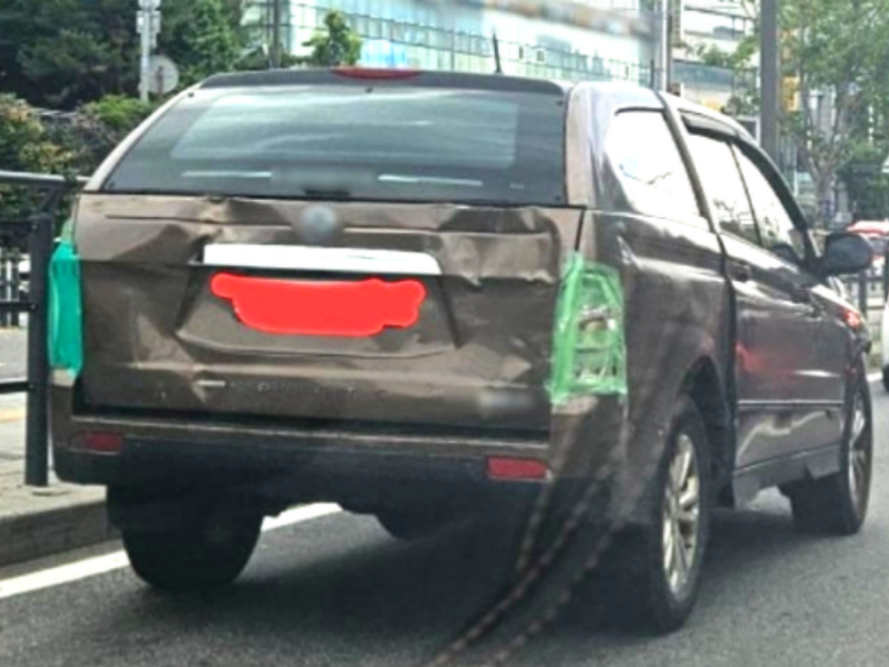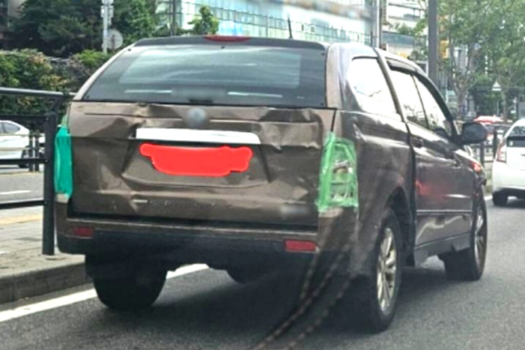 해당 자동차는 후면과 측면이 심하게 구겨진 모습의 더뉴코란도 스포츠로 우측 문이 들뜬 모습에 왼쪽 후미등은 청테이프로 완전히 가려 있었고, 우측 후미등은 부분만 가려진 상태였다. 글을 쓴 A 씨는 “진짜 희한한 차”라며 “이게 운행이 가능한 상태냐. 볼수록 신통하다”라고 언급했다.