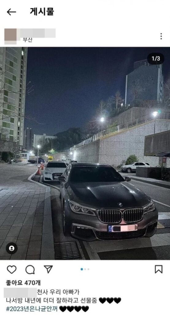 이어 장인이 나균안에게 사준 차가 총 3대라고도 언급한 A씨는 자신의 아버지가 사준 차 안에서 나균안이 블랙박스를 끄고 애정 행각을 벌였다고 주장했다. 실제로 지난해 4월, A씨는 인스타그램에 BMW 7시리즈 차량의 사진을 올리며 “천사 같은 우리 아빠가 나서방을 위해 내년에 더 잘하라고 선물을 주셨다”라는 글을 남겼다. BMW 7시리즈의 가격은 약 1억 5000만 원대에 달한다.