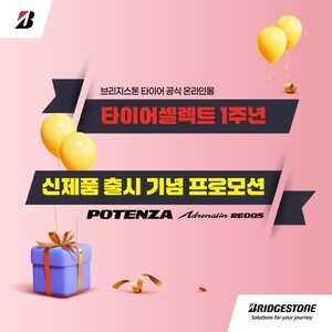 브리지스톤 타이어 세일즈 코리아(이하 브리지스톤 타이어)가 직영 온라인 쇼핑몰 타이어셀렉트 출범 1주년을 기념하고, 신제품 고성능 스포츠 타이어 포텐자 아드레날린 RE005 국내 출시를 기념해 타이어 구매 고객을 대상으로 사은 행사를 진행한다.