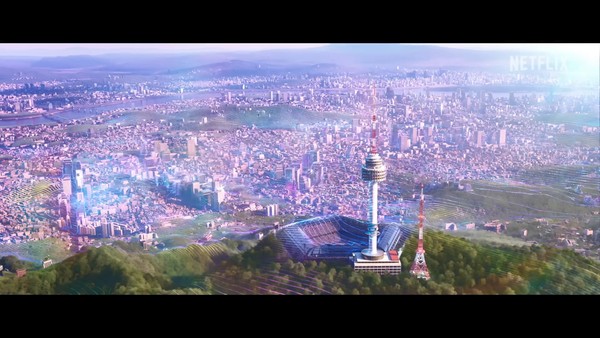 남산타워와 (가상의)남산 스타디움 /넷플릭스 패밀리 유튜브 |
