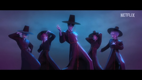 무당, 아이돌, 케이팝, 저승사자 등 이 모든 단어가 섞인다고 한다면 대체 뭘 다루려고 하는지 생소할 수 있다. 그러나 이 애니메이션은 처음부터 머나먼 과거로 돌아가 악귀를 물리치는 세 명의 무당을 보여준다. 함께 깔린 내레이션은 무당이 왜 세대가 이어지며 자연스레 헌터가 됐고, 지금의 헌트릭스가 탄생했는지에 대한 이해를 돕는다.