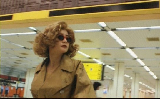 영화 <중경삼림> 스틸컷, 금발의 가발과 선글라스, 레인코트의 그녀 /네이버 영화 |