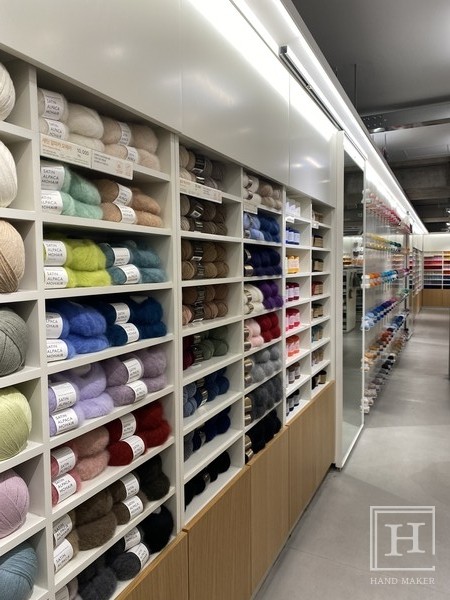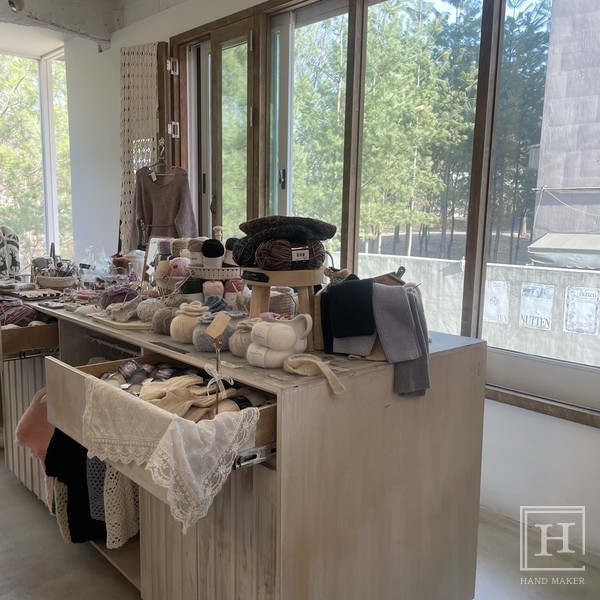 1층에서는 실과 바늘, 단추 등 다양한 뜨개질 재료들을 판매하고 있다. 또 니트나 가방 등을 만들 수 있는 실을 패키지로 구매할 수 있었는데 이에 대한 샘플 제품도 진열되어 있어 이를 구경하는 재미가 있다.