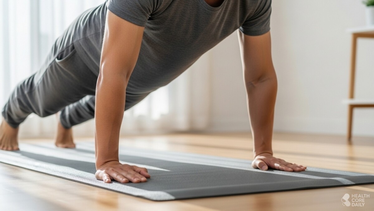 하프 버피는 기본 버피 동작에서 점프를 뺀 형태로, ‘서 있다가 쪼그려 앉은 뒤 다리를 뒤로 뻗어 플랭크 자세를 만들고, 다시 앞으로 가져와 일어서는’ 과정을 반복하는 전신 운동이다. 점프가 없기 때문에 관절 부담과 소음이 적어, 아파트나 층간 소음이 걱정되는 환경에서도 무리 없이 할 수 있다.