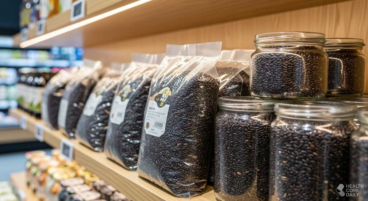 마트에 진열된 흑미. / 헬스코어데일리 |