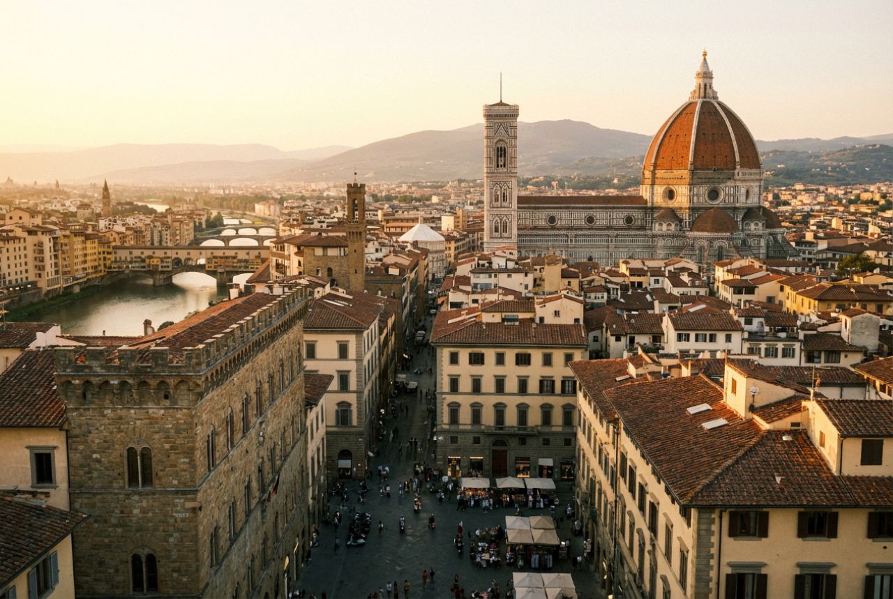 로마에서 약 1시간 30분 정도 고속열차를 타고 이동하면 르네상스 예술의 도시 피렌체에 도착합니다. 피렌체 두오모 성당과 우피치 미술관, 베키오 다리 등은 이탈리아 여행에서 꼭 들러야 할 명소입니다.