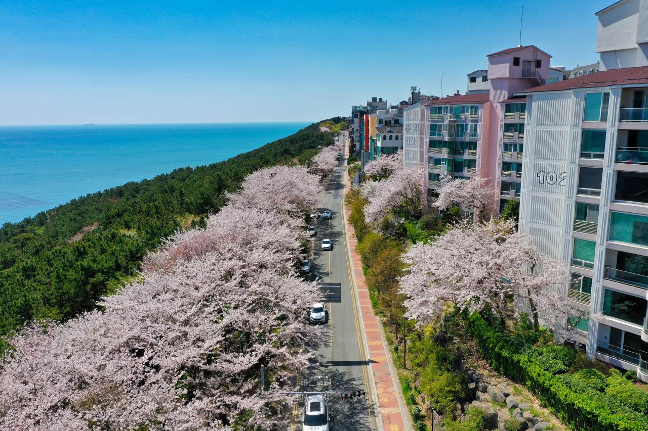 ▲부산 달맞이길(해운대 근처) | 벚꽃+바다 조합이 반칙