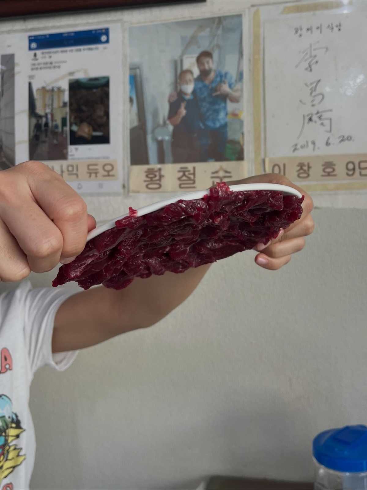 ▲식신 ‘한가한가해’님의 리뷰: 오픈런해서 바로 입장했고 뭉티기와 오드레기 주문, 뭉티기는 평일만 판매하니까 미리 꼭 알고 오셔야 해요. 뭉티기 나오자마자 주변 테이블에서 다들 한번씩 뒤집어보심 ㅋㅋ 물론 나도.. 소스가 진짜 킥이에요. 고소 담백하니 맛있습니다. 오드레기도 맛있고 콩나물반찬이 진짜 맛있습니다.