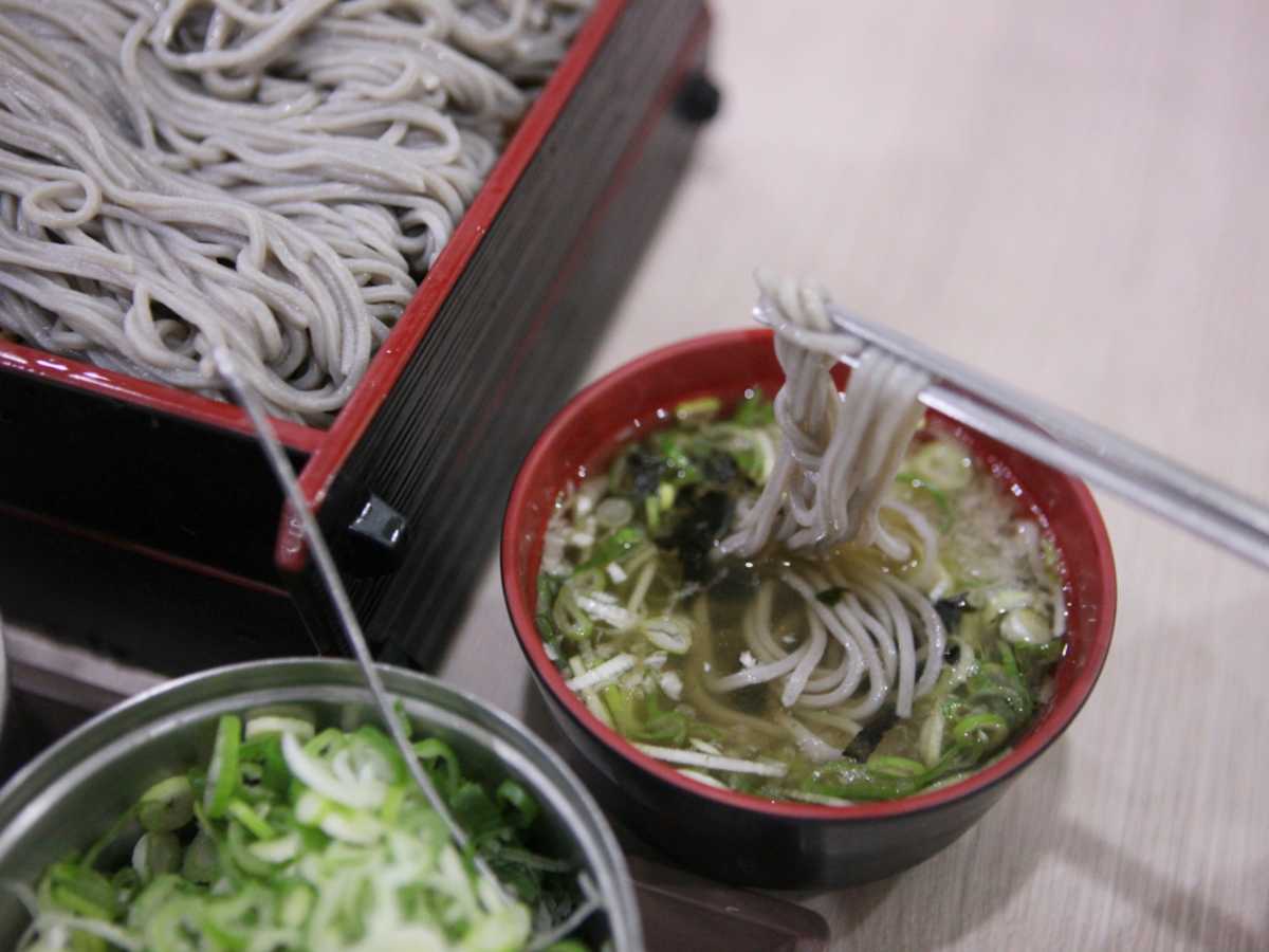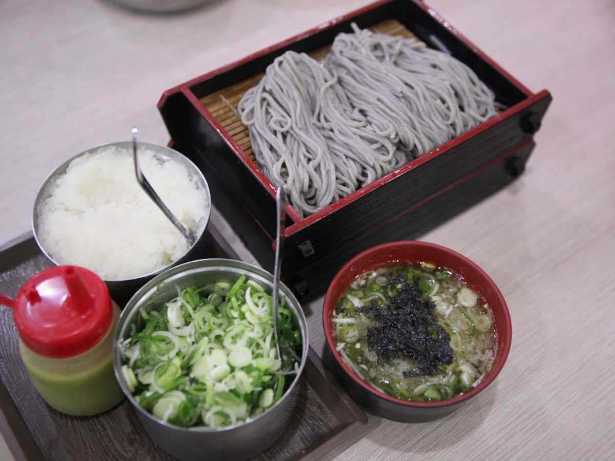 A. 간장 베이스의 진한 육수와 무·김·파 고명이 어우러진 한국식 메밀국수다.