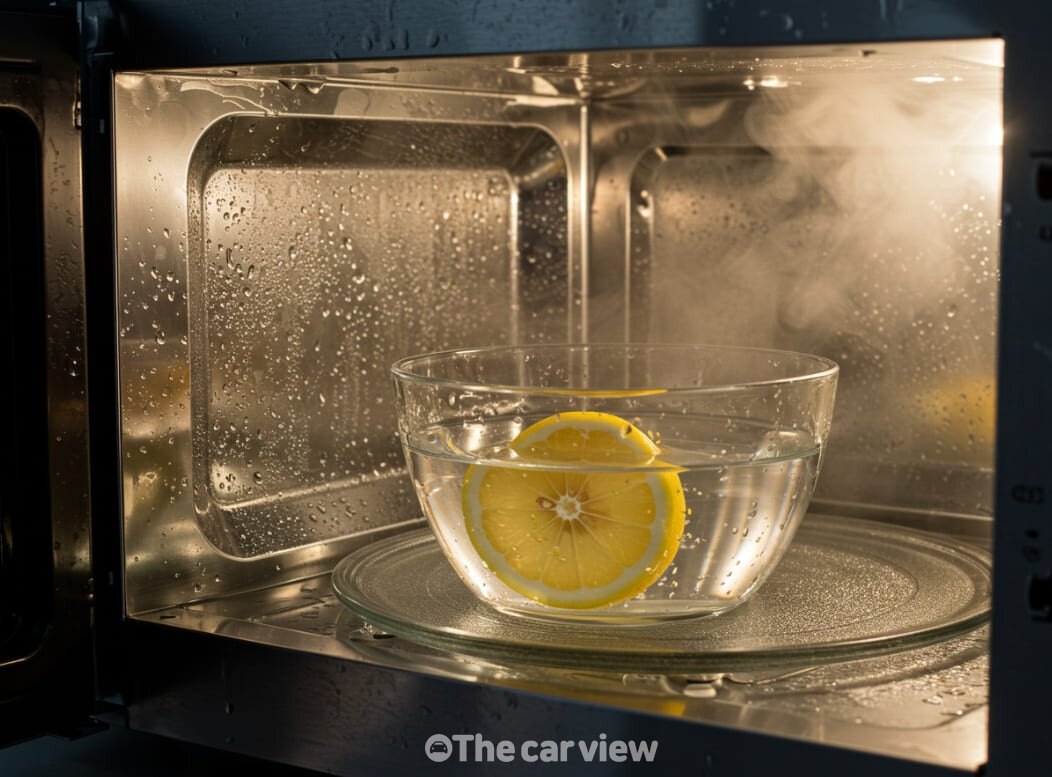 이럴 때 집에서 가장 간단하게 해볼 수 있는 방법이 레몬 반 개를 넣은 스팀 청소다. 전자레인지용 그릇에 물 한 컵 정도를 담고 레몬 반 개 즙을 짜 넣은 뒤, 남은 껍질까지 함께 넣어 5분 정도 돌려주면 안쪽에 뜨거운 김이 가득 찬다.