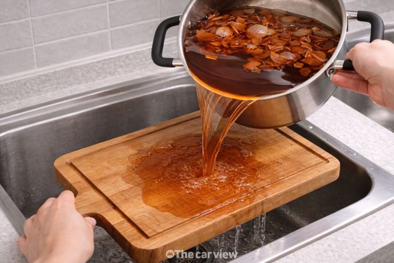 양파 껍질 자체가 주방 세제처럼 거품을 내는 것은 아니지만, 뜨거운 물이 도마 표면과 행주에 남은 냄새 원인을 먼저 풀어주기 때문에 청소가 훨씬 수월해졌다고 느끼는 경우가 많다.