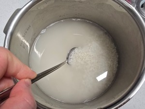 이때 가장 중요한 것은 높게 쌓은 쌀이 물 위로 올라오지 않게 하는 것이다. 쌀이 물 위로 완전히 빠져나오면 그 부분이 제대로 익지 않거나 너무 퍽퍽하게 될 수 있다. 물 표면 바로 아래까지 쌓이는 정도가 딱 맞는 높이다.