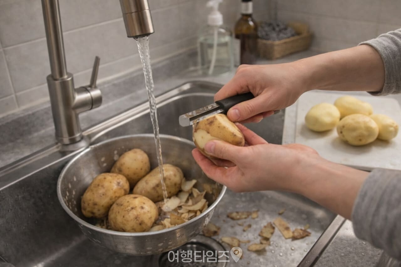 특히 감자 반찬을 하고 남은 껍질을 그대로 활용할 수 있다는 점에서 살림 팁으로 더 반응이 좋다. 원래 버릴 재료를 다시 써먹는 방식이라 돈도 들지 않고, 식초 냄새처럼 강한 자극도 덜하니 한 번쯤 따라 해보는 집이 많다. 물때가 아주 심하게 굳기 전이라면, 이런 식의 부드러운 불림 청소가 의외로 괜찮다는 이야기가 나오는 이유도 여기에 있다.