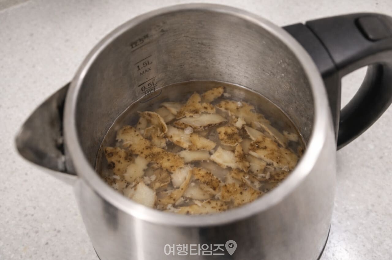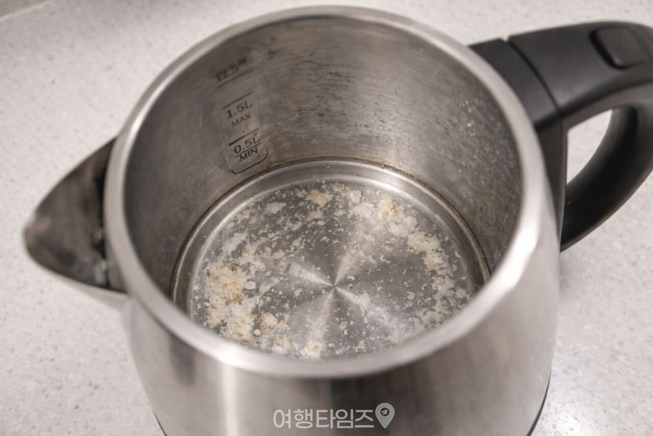 전기포트 감자껍질 설거지 / 사진=여행타임즈